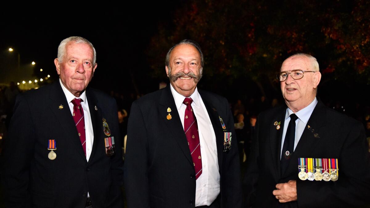 Special day: Bruce Smith, Leigh Bennett and Col Perkins at the Moama dawn service.