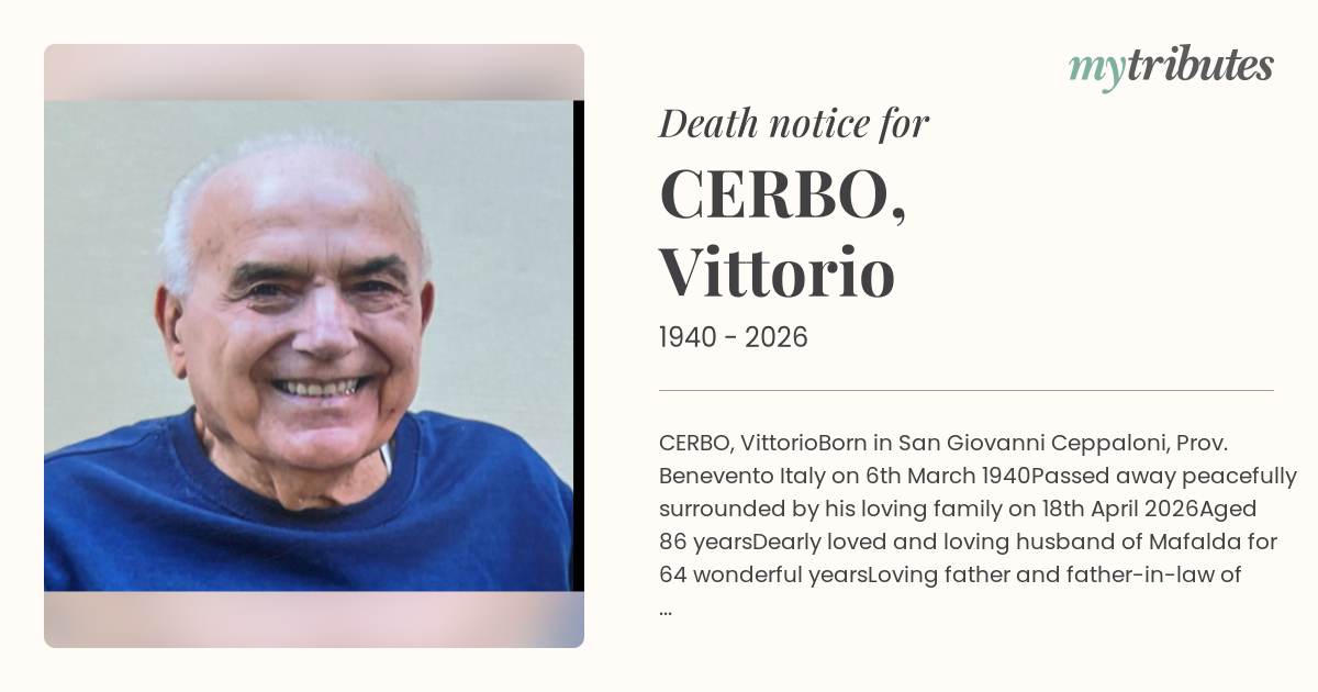 The family sincerely like to thank Dr. Mascolo, and the caring Medical Team of Calvary Adelaide Hospital