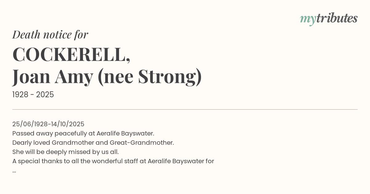 A special thanks to all the wonderful staff at Aeralife Bayswater for