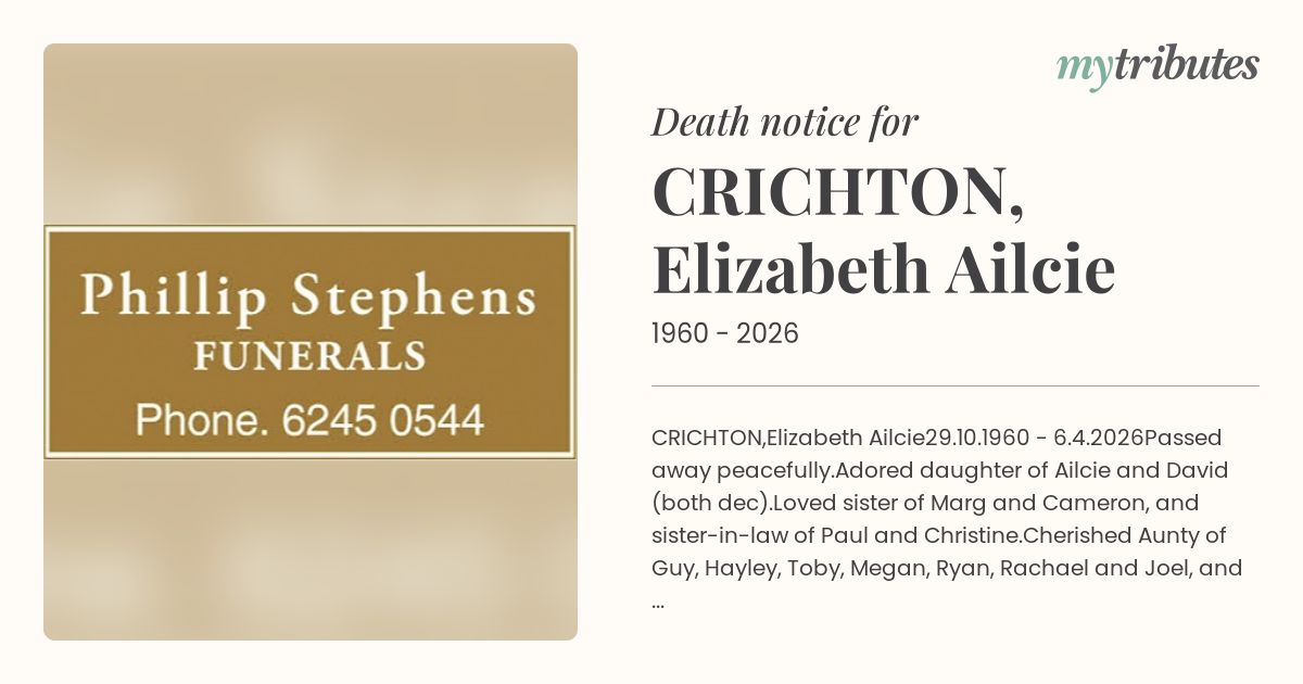 Cherished Aunty of Guy, Hayley, Toby, Megan, Ryan, Rachael and Joel, and Great-Aunty to Harvey and Reuben.