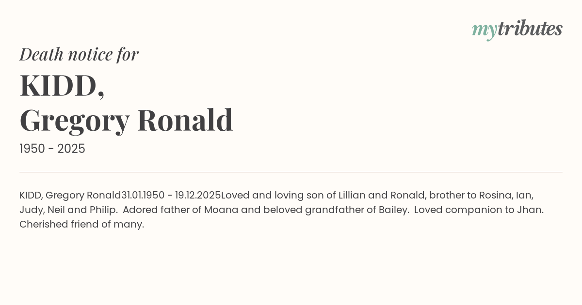 brother to Rosina, Ian, Judy, Neil and Philip. Adored father of Moana and beloved grandfather of Bailey.