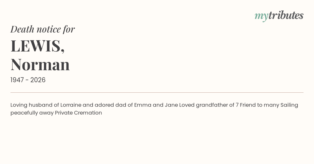 18°CLoving husband of Lorraine and adored dad of Emma and Jane