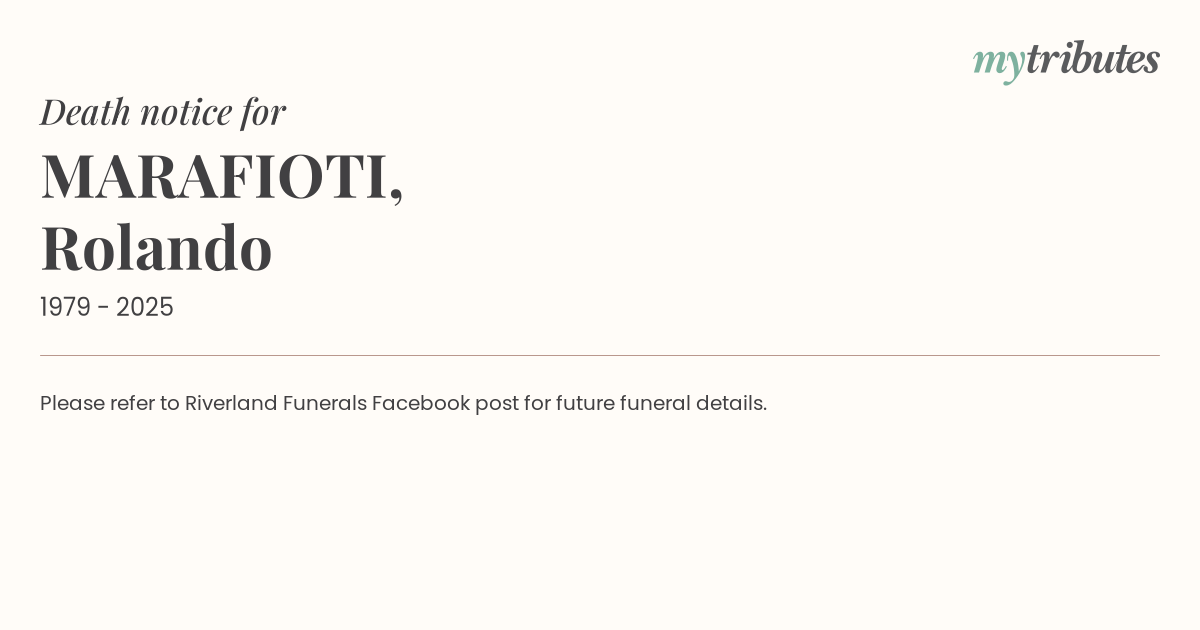 18°CPlease refer to Riverland Funerals Facebook post for future funeral details.