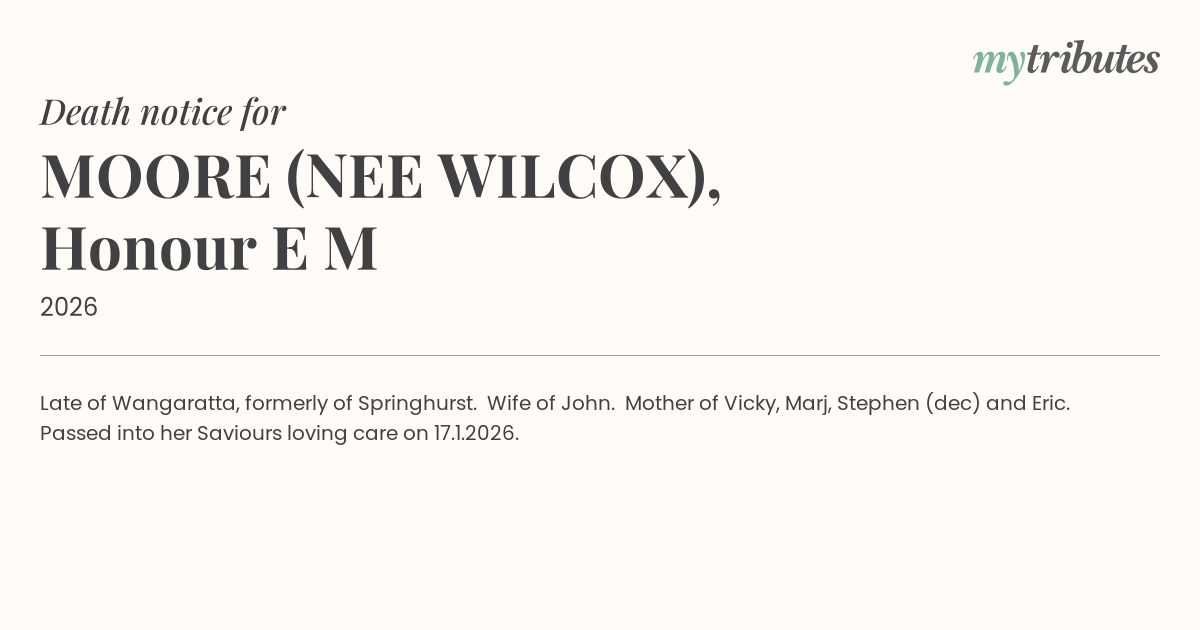 18°CLate of Wangaratta, formerly of Springhurst.