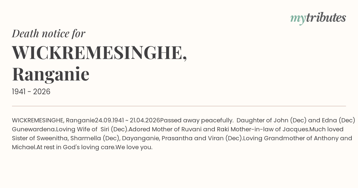 Edna (Dec) Gunewardena.