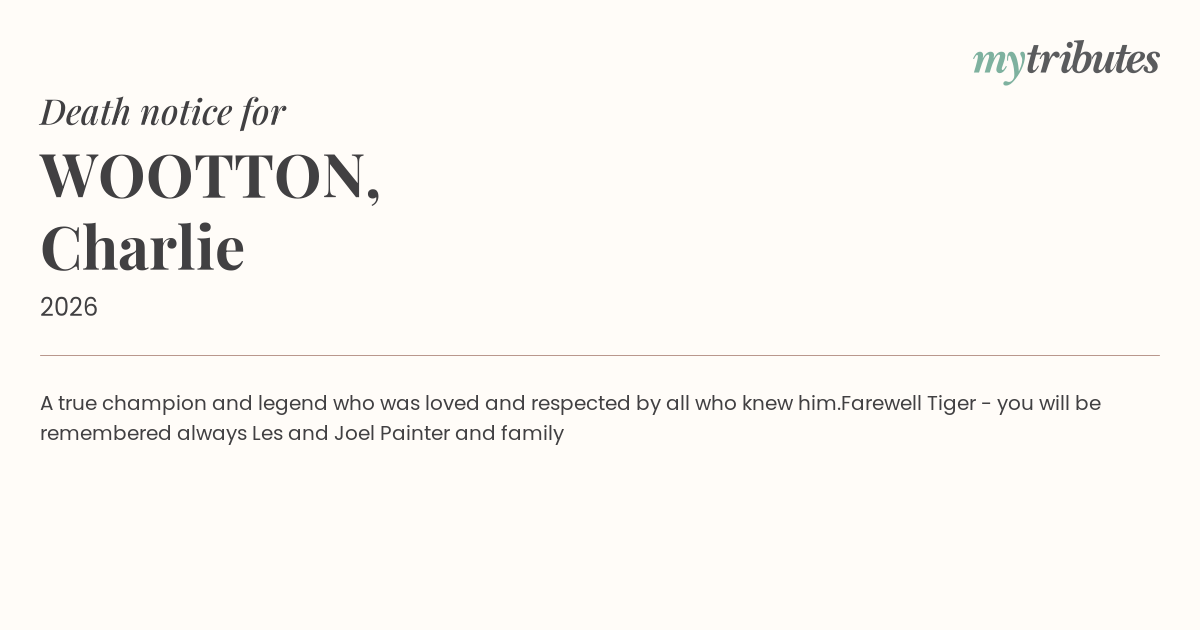 18°CA true champion and legend who was loved and respected by all who knew him.