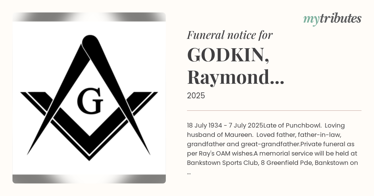 Private funeral as per Ray's OAM wishes.